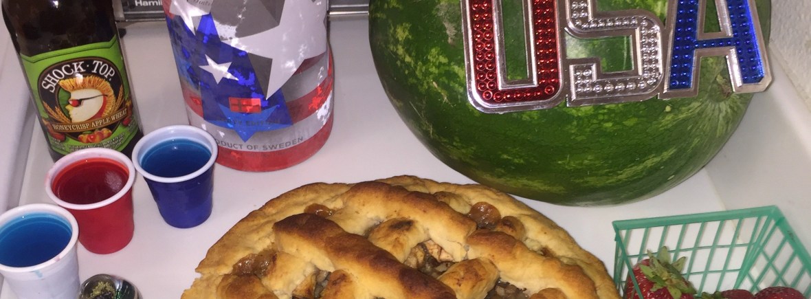 Independence Day, or better known as the 4th of July is my favorite holiday! There are aspects of America that I am not proud of but this day is about celebrating the classic American hobbies in a summery way. The Fourth of July means BBQing, pool parties, apple pie, drinking, red and blue Jello shots, patriotic trivia and of course fireworks! I get such joy out of baking an apple pie from scratch and preparing for a BBQ. Typically, my friends are indifferent to this holiday so I set the mood with my over the top celebrations. If you say “America” you have to take a Jello shot and before you know it the crowd is happily buzzed!